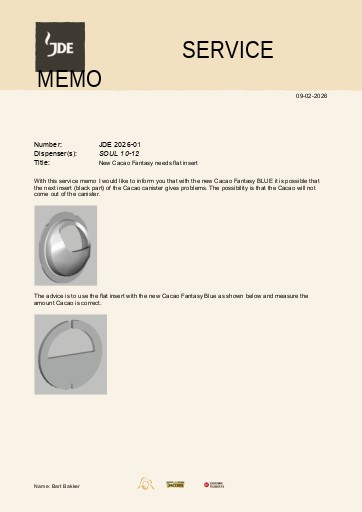 Document JDE 2026 01 Service Memo Soul 10 12 New Cacao Fantasy needs flat insert